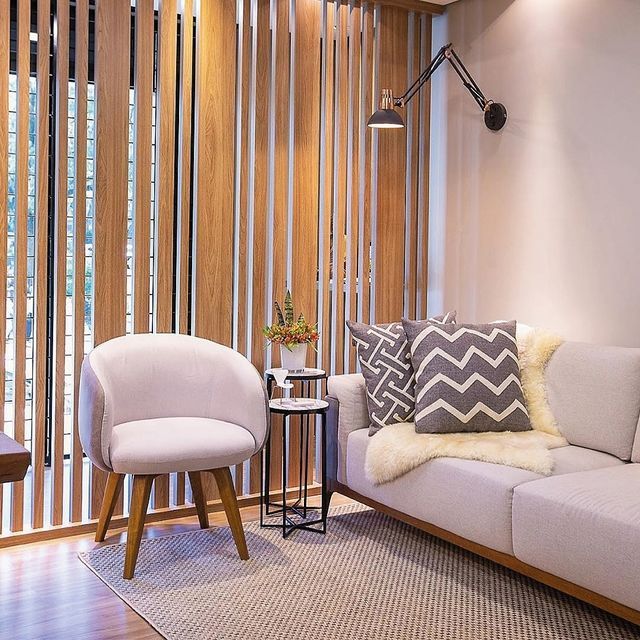 A poltrona precisa ser proporcional ao espaço disponível, de forma que não comprometa a circulação. No caso de poltronas para salas pequenas, o sofá pode ser reduzido a um modelo de 2 lugares, para que haja espaço para mais um estofado.