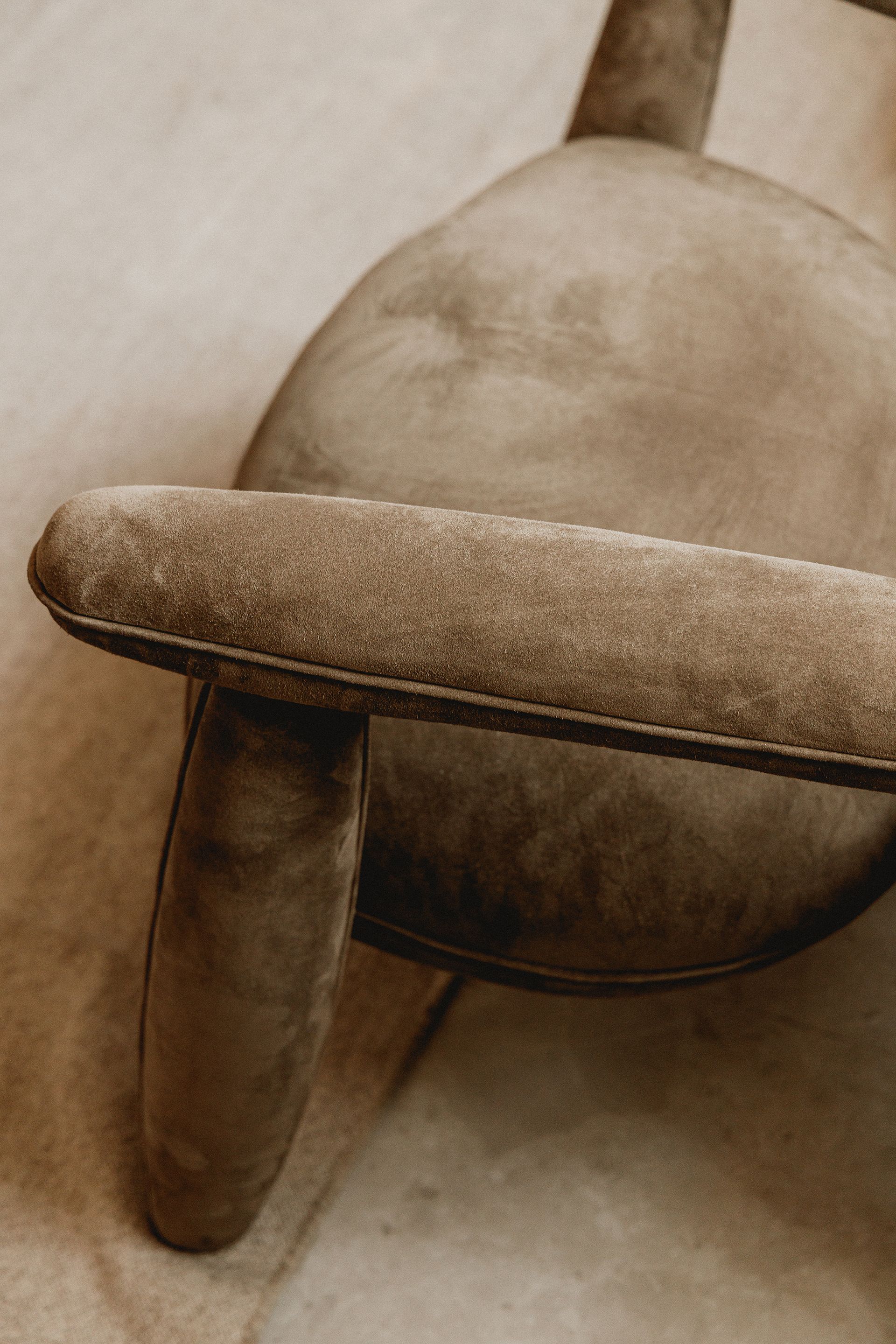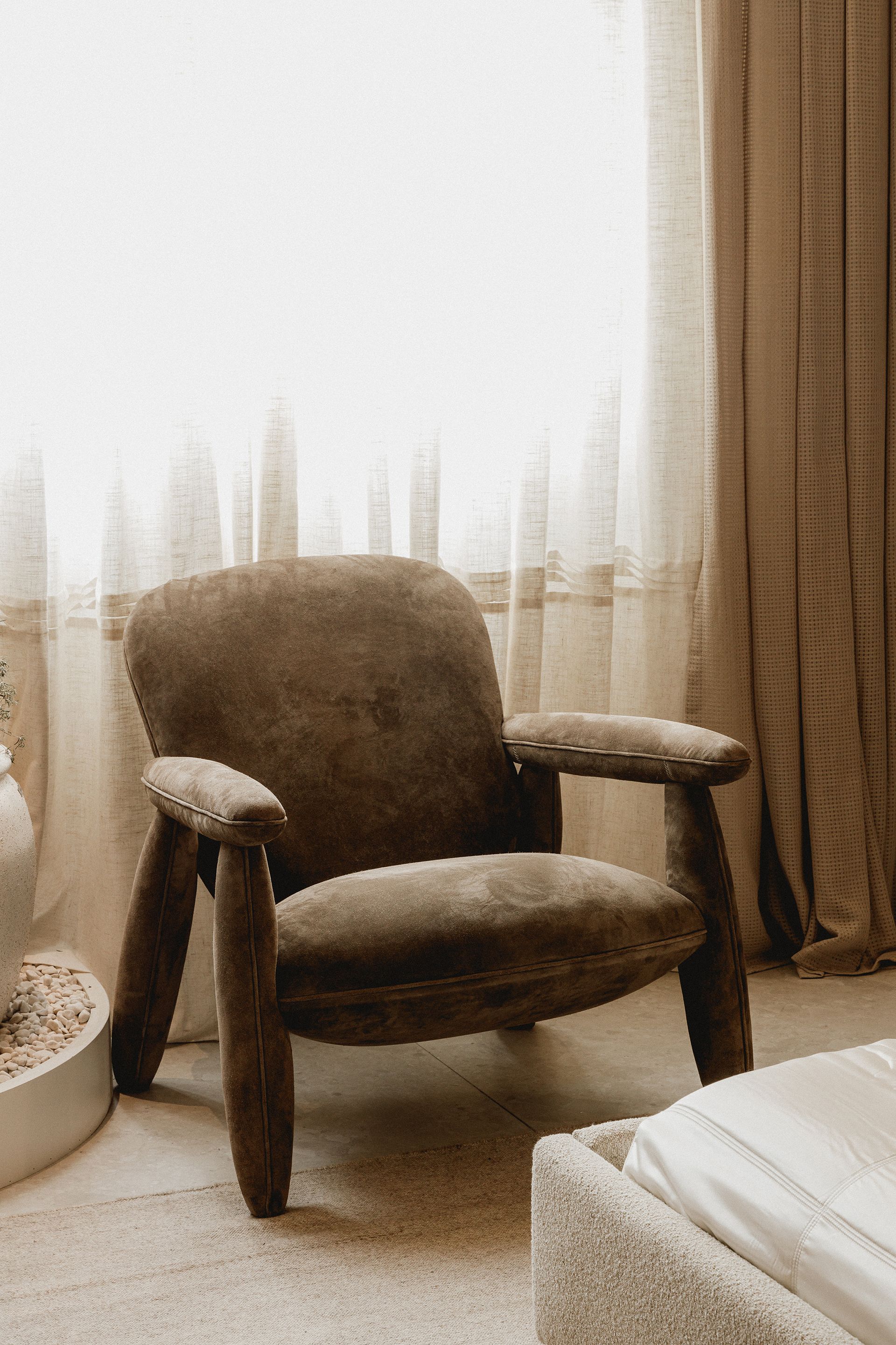 A poltrona Botero, assinada por Lattoog, é inspirada pelo pintor colombiano Fernando Botero, combinando traços escandinavos com volumes fartos e orgânicos. Esta peça iconográfica e 100% estofada é um destaque no ambiente.