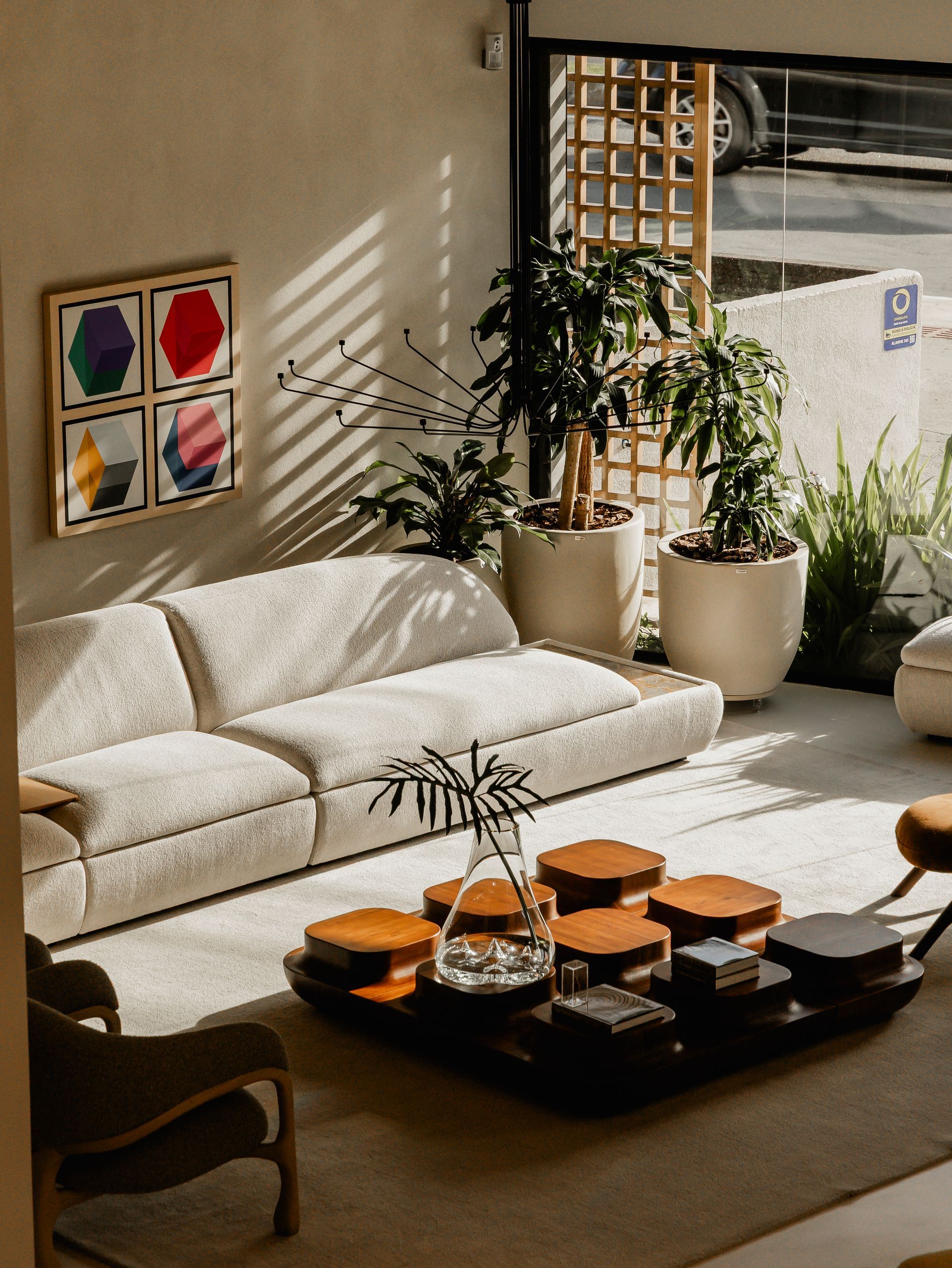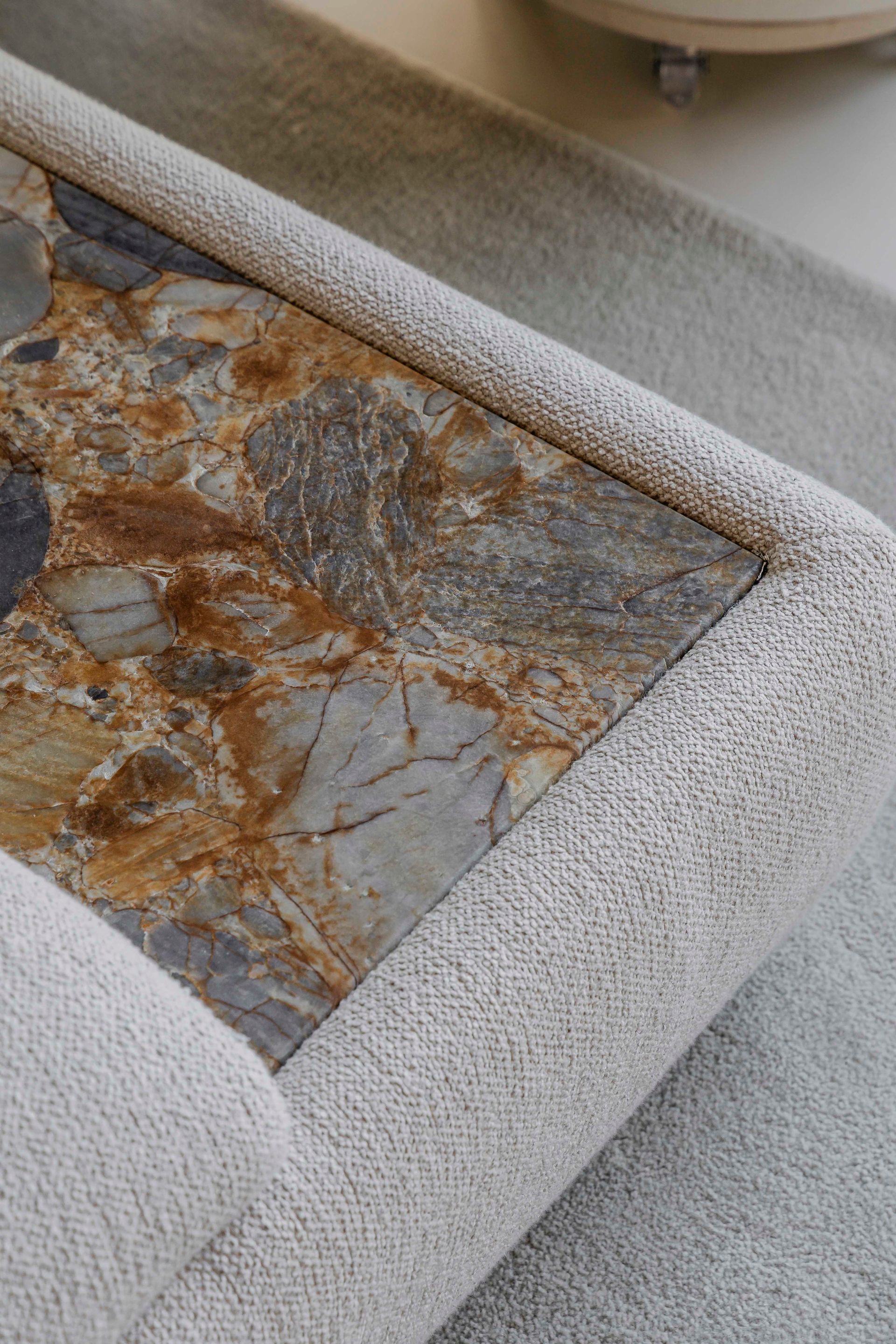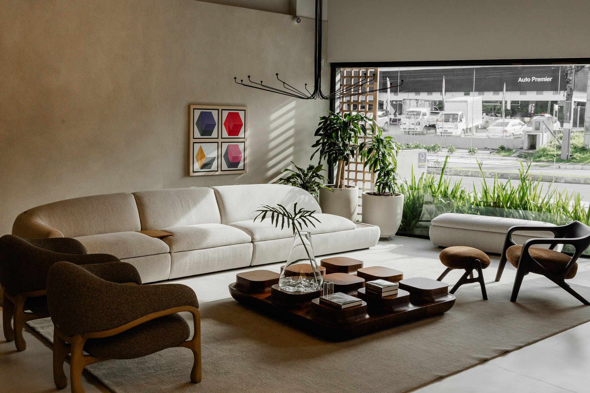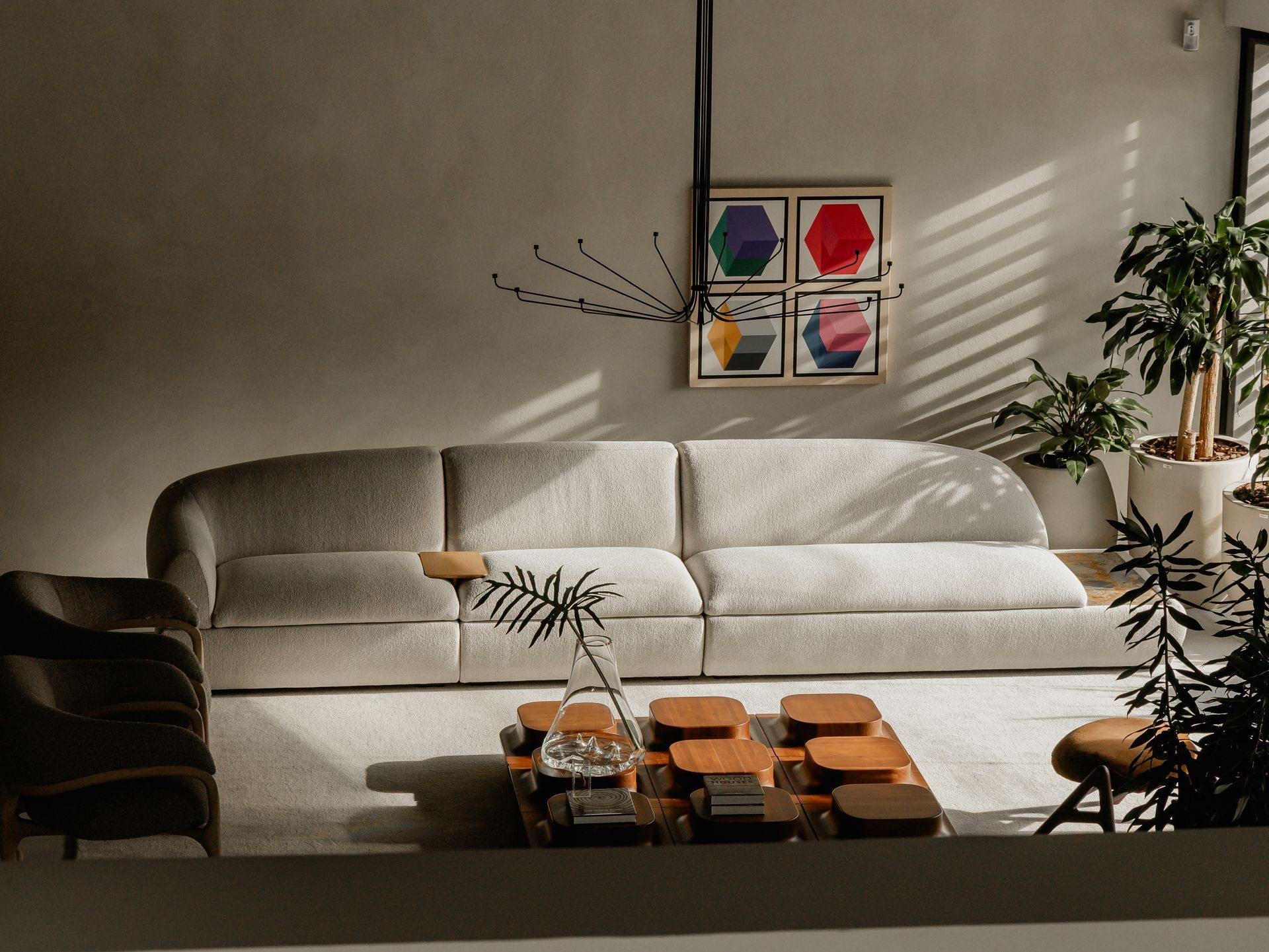 Where time rests. Where form dissolves. From ancient Greek, Aión designated eternity not as something distant, but as a continuous flow without beginning or end. Inspired by this notion of permanence, the Aion sofa is born from the land of the essential—as if the form sprouted from a single gesture. Everything rests in balance like a landscape sculpted by time—as the seat and backrest naturally support themselves on their base. Modules connect by affinity, allowing fluid, mutable compositions. The built-in table emerges as a natural extension of the piece. Aion is a silent manifesto against urgency, a space where time decelerates.