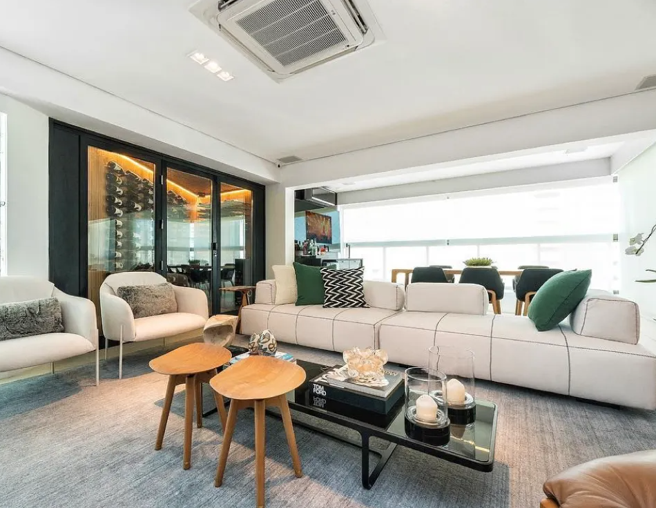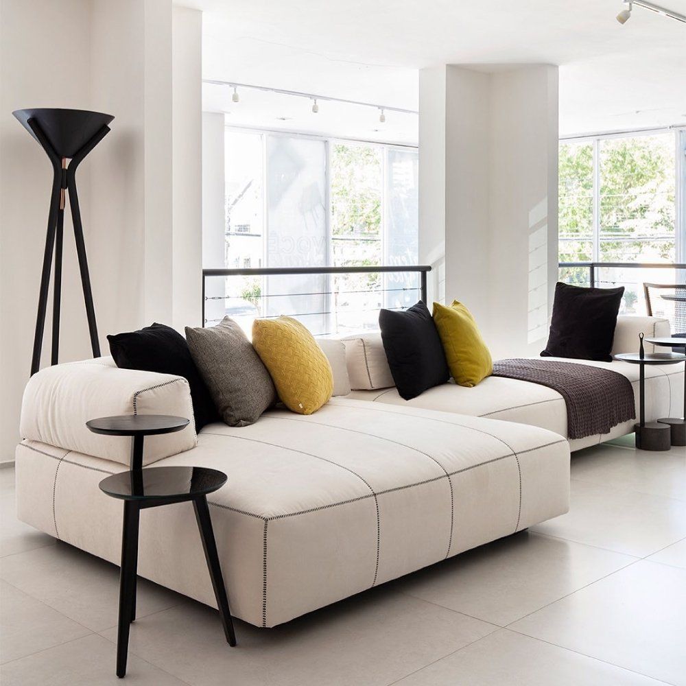 Lençóis Maranhenses, by Léo Apter - Echoing the unique beauty of the world's only desert dotted with lagoons, the Lençóis Maranhenses sofa, designed by Léo Apter, captures the essence of the shifting dunes. This sofa allows for countless configurations with its block seats and movable backrests, and features elegant seat embroidery, detailed stitching on the backrests and cushions, available in both exposed and covered versions.