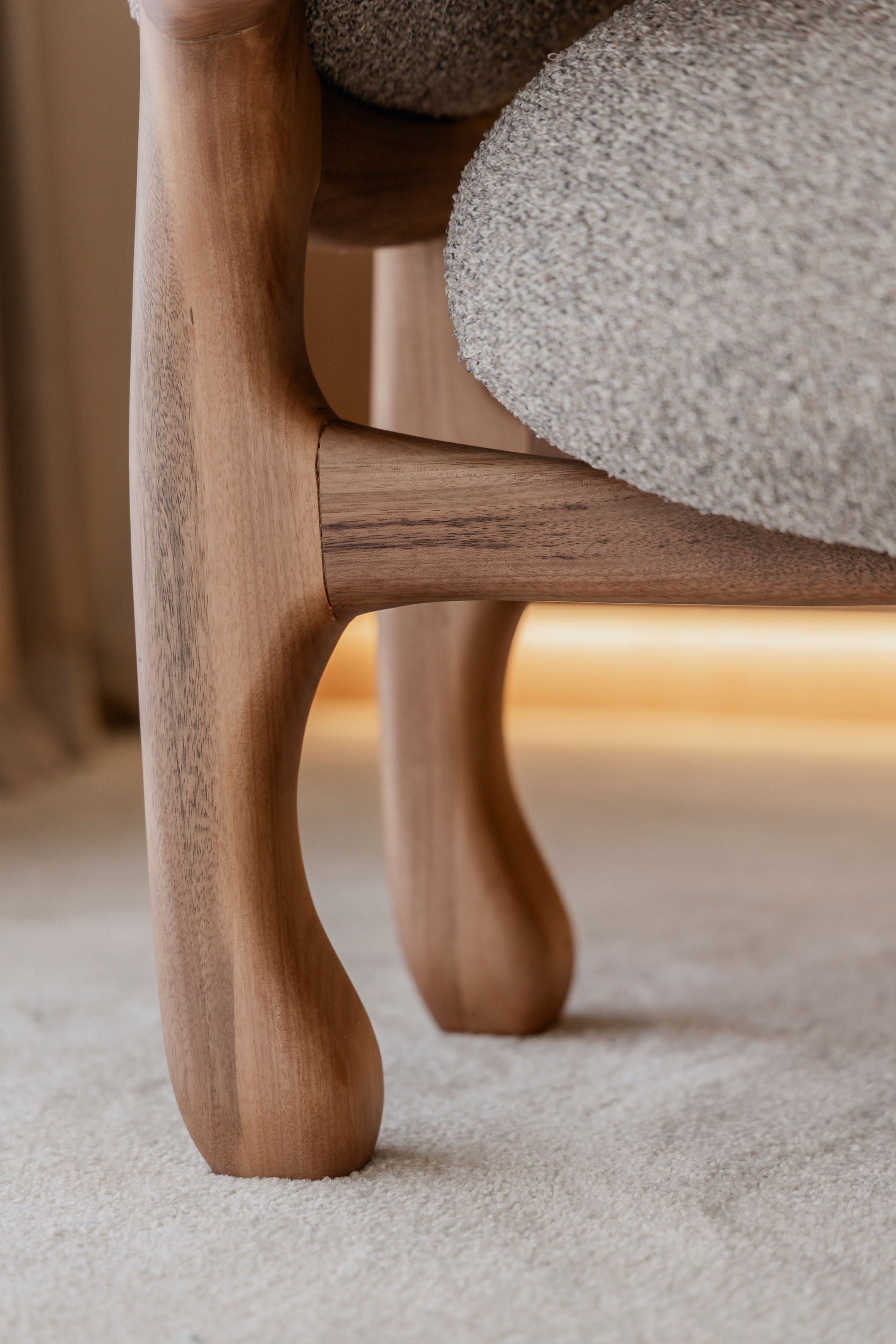 Alba es el instante en que todo comienza — la luz suave de la mañana, el crecimiento silencioso de las raíces, el gesto natural que une forma y acogimiento. Con base escultórica en madera maciza, esta poltrona nace de la tierra y se eleva con ligereza, como un nuevo día.