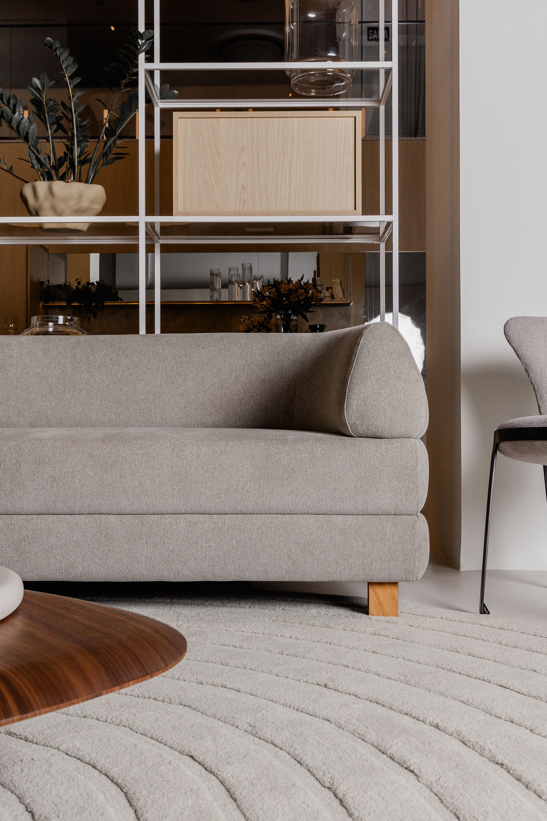 Sofá orgánico/lineal, inspirado en la presencia silenciosa y precisa de la luna. Su forma curva y acogedora evoca la media luna creciente — símbolo de expansión, delicadeza y renovación. Lunna es como la luna: constante, serena, fluida. Un sofá que no solo ocupa el espacio — lo pacifica. Su diseño parte de una curva continua, casi orbital, que envuelve con ligereza sin perder el trazo. Orgánico y lineal al mismo tiempo, Lunna no se define por opuestos, sino por el espacio entre ellos: donde la suavidad encuentra la geometría, donde el gesto escultórico sirve al cuerpo. Diseñado para ambientes de transición o puntos de respiro en la distribución de la casa, Lunna flota con discreción. No compite por protagonismo — ofrece pausa.