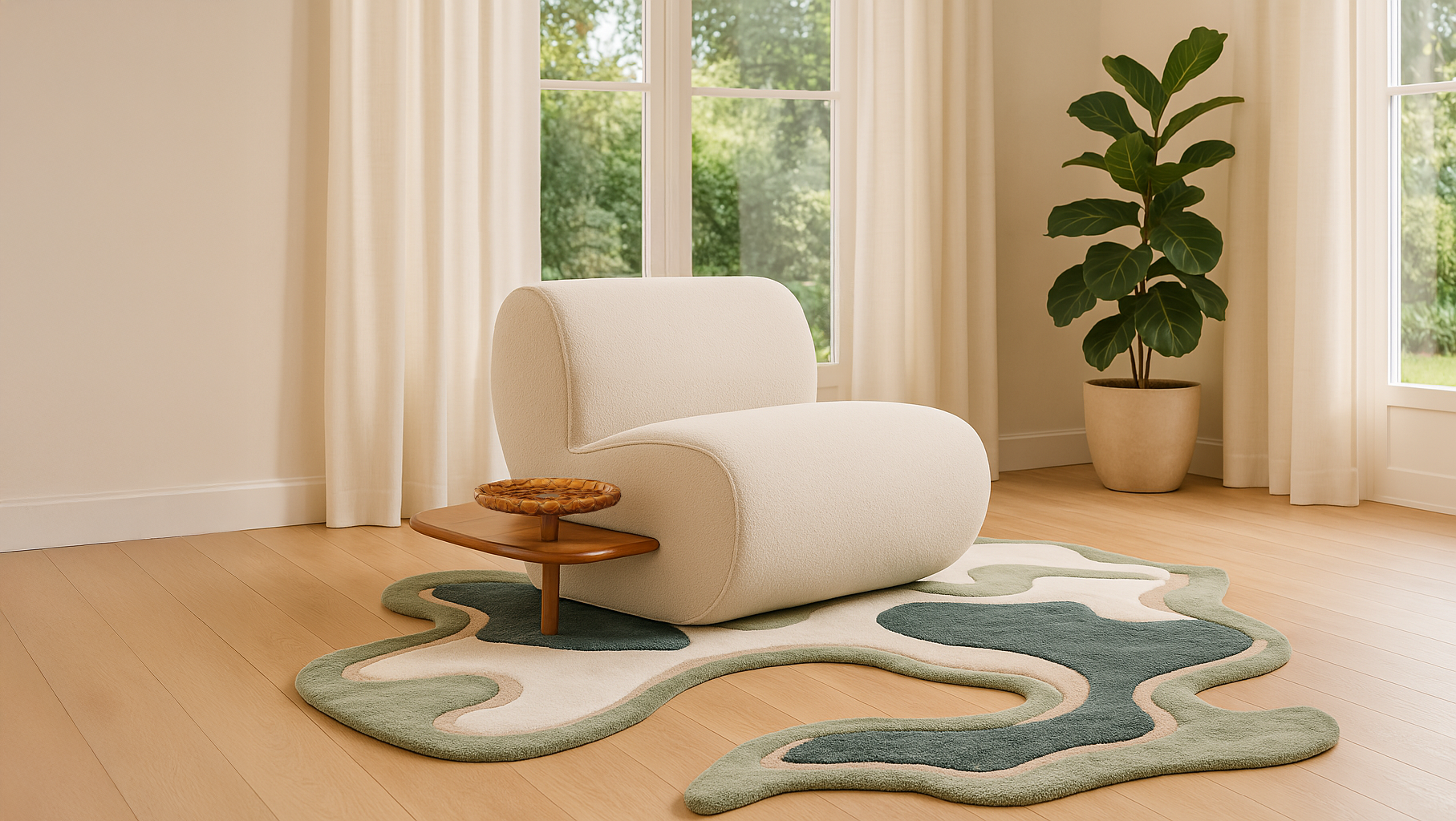 Assinado por Larissa Diegoli, o Sofá Juruá traduz as curvas do rio mais sinuoso do mundo em um design orgânico e envolvente. Seu contorno fluido, o deck em madeira maciça e a mesa lateral com tampo em couro de pirarucu remetem às paisagens ribeirinhas da Amazônia, unindo funcionalidade, sustentabilidade e brasilidade. Uma peça que transforma o espaço com conforto, presença e significado.