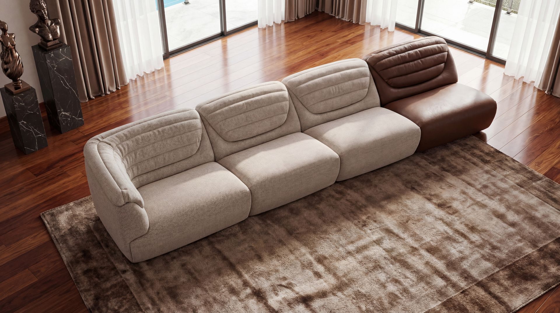 Pelago nasce da vastidão, um convite ao abandono das formas rígidas do cotidiano. Inspirado no mar aberto e no silêncio que só a imensidão conhece, seu desenho farto e modular ecoa a liberdade de compor espaços de descanso. Cada módulo é um gesto de conforto. O encosto, em formato de envelope, abraça o corpo com uma suavidade quase líquida. Oferecendo uma ergonomia surpreendente, como se cada parte do corpo encontrasse seu lugar exato sem esforço. Pelago é o espaço onde o design encontra o descanso.
