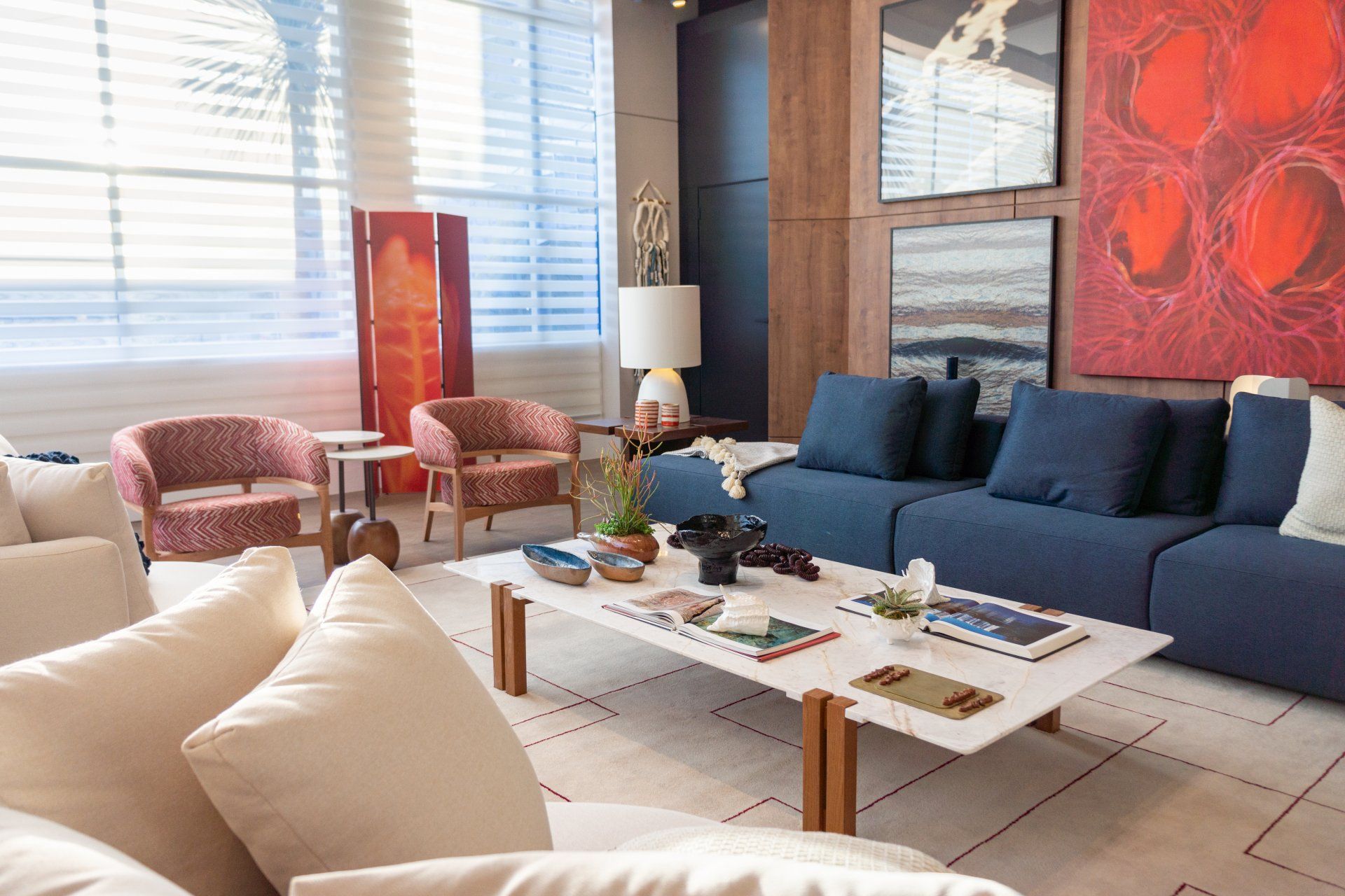 Um dos ambientes que chamaram a atenção foi o Living Pormade, concebido como um espaço para receber com um mobiliário que prioriza as boas conversas e a interação entre amigos e família.
