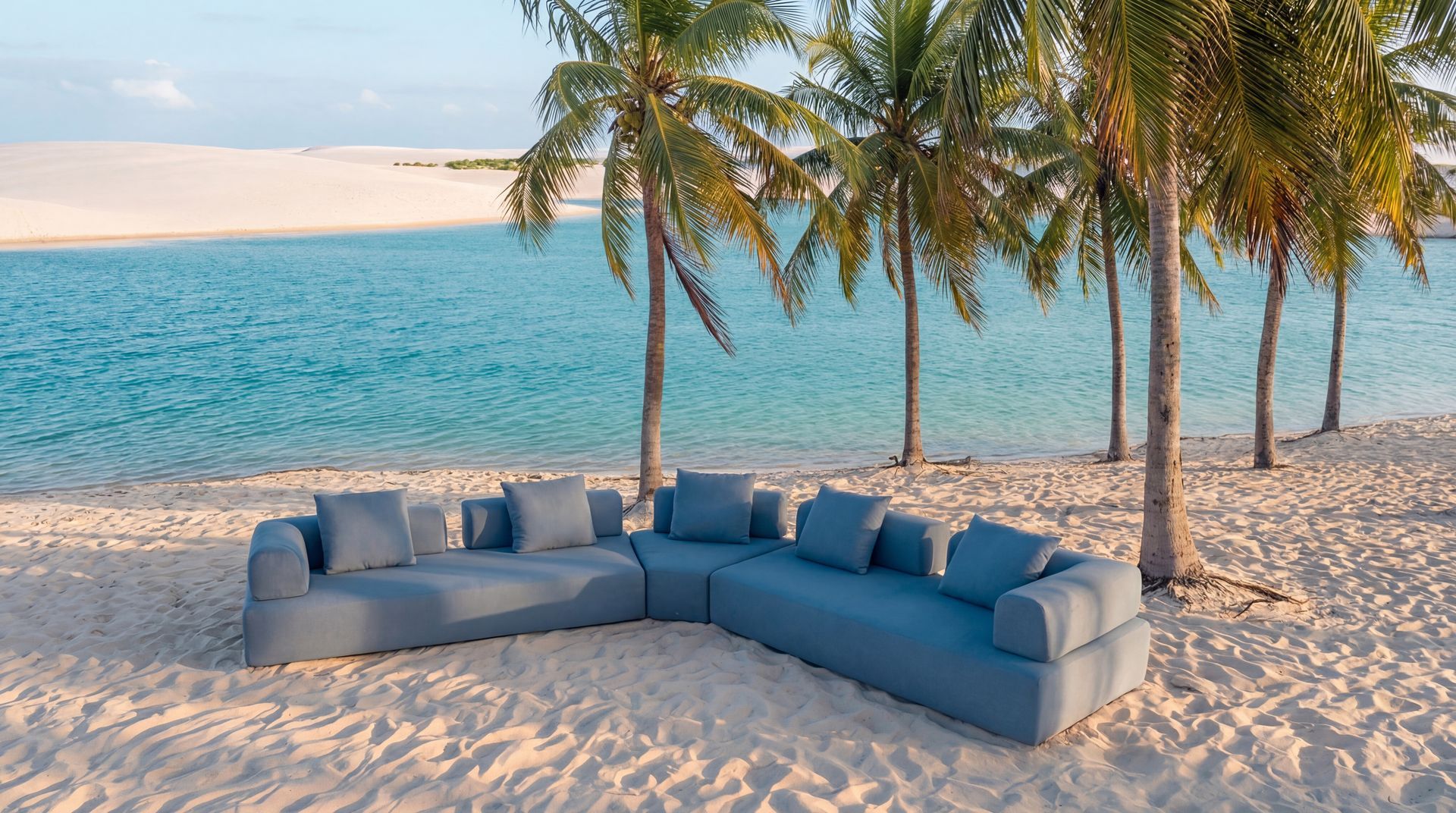 E para ampliar ainda mais suas possibilidades, o Sofá Lençóis Maranhenses hoje existe nas versões indoor e outdoor, mantendo a mesma essência orgânica e o conforto característico em diferentes tipos de ambiente.