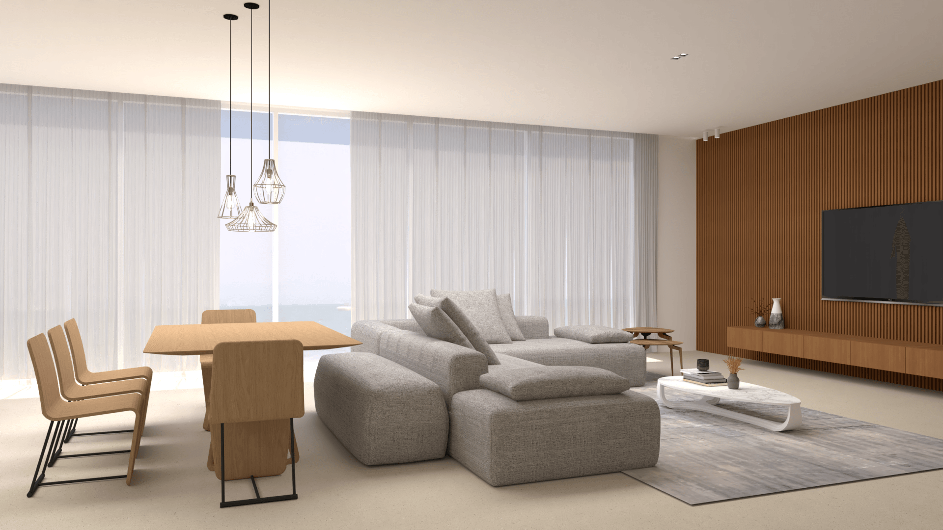 Com assentos amplos e encostos baixos, o modelo segue a estética de sofá-ilha, podendo ser centralizado no ambiente para se tornar ainda mais convidativo a interações.